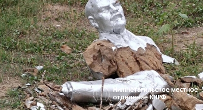 В ночь на 28 октября в центре посёлка Белоярский, Свердловской области рядом со зданиями администрации муниципалитета и отделения полиции неизвестные тяжёлым предметом проломили голову бюста В.И. Ленина.