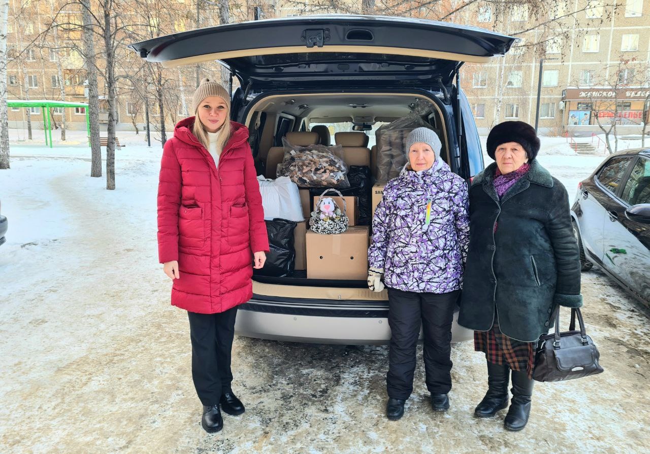 По уже сложившейся традиции, Совет ветеранов Ленинского района Екатеринбурга передал большую партию носков, балаклав - не закупленных, а изготовленных рукодельницами, объединёнными энтузиазмом председателя Совета Ольги Величко.