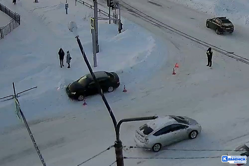 По знакам три полосы, по факту — две. На перекрестке Каменска-Уральского водитель ехал по правилам, но внезапно угодил в сугроб
