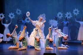 Для юных маленьких лесничан артисты хореографической школы сыграли танцевальную новогоднюю сказку и провели хоровод, волонтеры показали, как смастерить нарядную ёлочку своими руками.