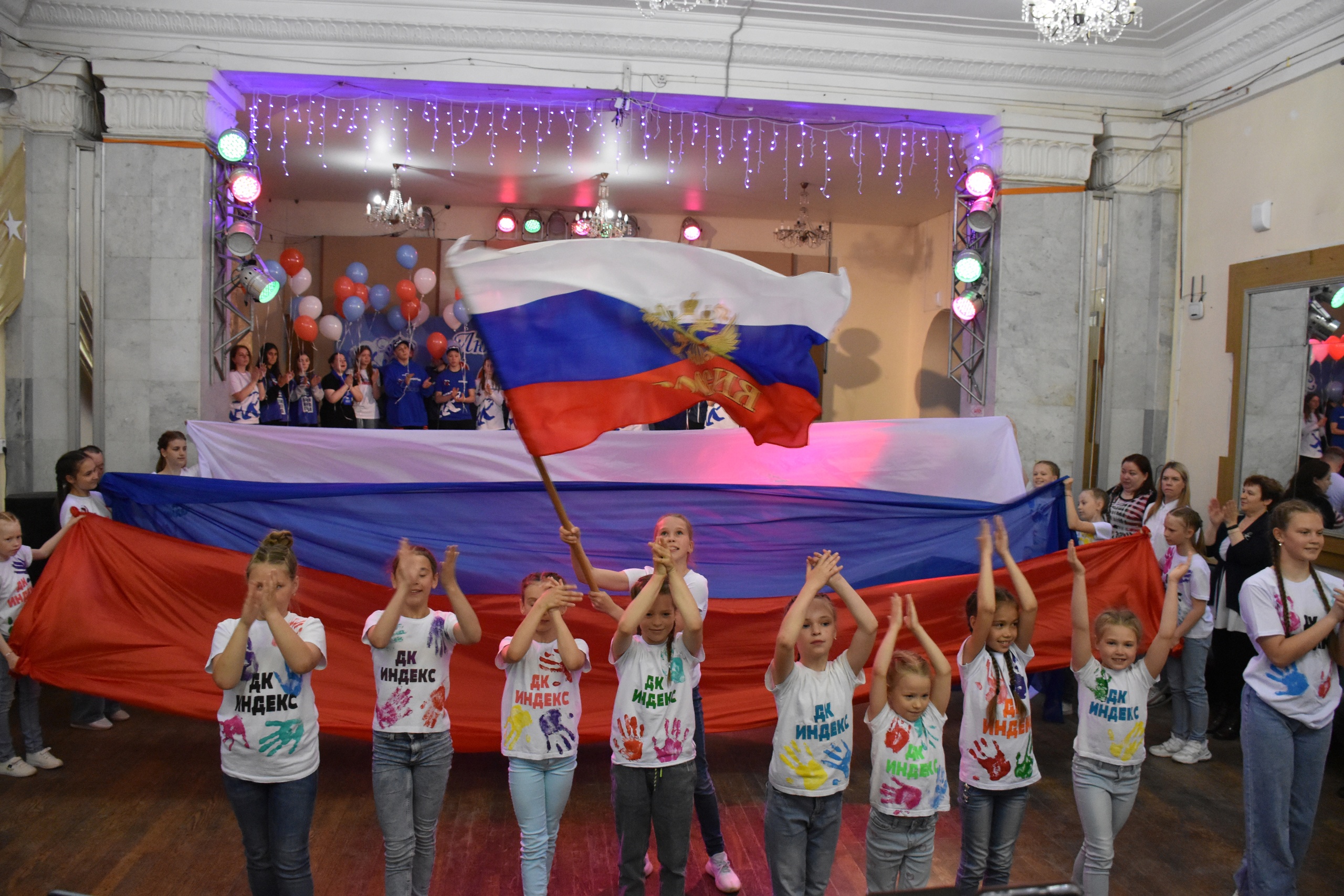 Праздничный концерт, длившийся около двух часов, включал в себя лучшие вокальные и танцевальные номера творческих коллективов Культурно-досугового комплекса городского округа Краснотурьинск. Не только детям, но и взрослым пришлась по душе музыкальная игровая программа от Дома культуры «Индекс». Завершился праздник общей фотографией и запуском на придворцовой площади в небо воздушных шаров белого, синего и красного цветов, который был организован «Молодой гвардией».