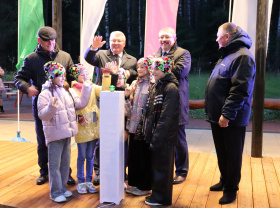 Вместе с детьми была нажата заветная кнопка – включилась иллюминация нового парка.