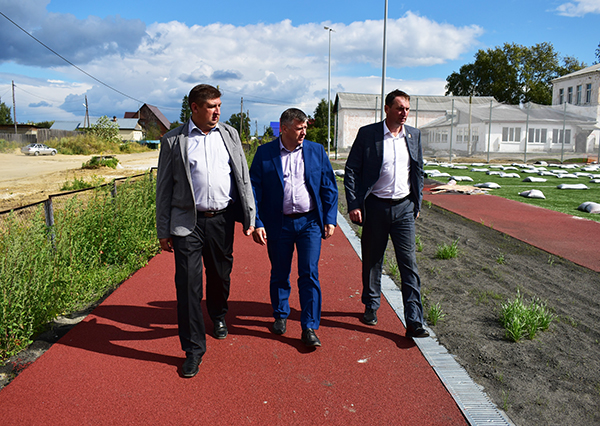 Руководитель муниципалитета, секретарь местного отделения ВПП «ЕДИНАЯ РОССИЯ» В.В. Миронов, председатель Думы округа Д.П. Нохрин, начальник Управления образованием С.Г. Рожина и заместитель главы администрации округа А.М. Романович 17 августа посетили общеобразовательную организацию №1, еде в настоящее время осуществляются работы по строительству пришкольного стадиона. На сегодняшний день подрядной организацией выполнена работы по нанесению разметки на поле для игры в волейбол и баскетбол, установлена сетка для игры в волейбол. Помимо этого, проводится укладка резинового покрытия на площадке с малыми архитектурными формами. Также к новому учебному году преобразится фасад здания образовательной организации.