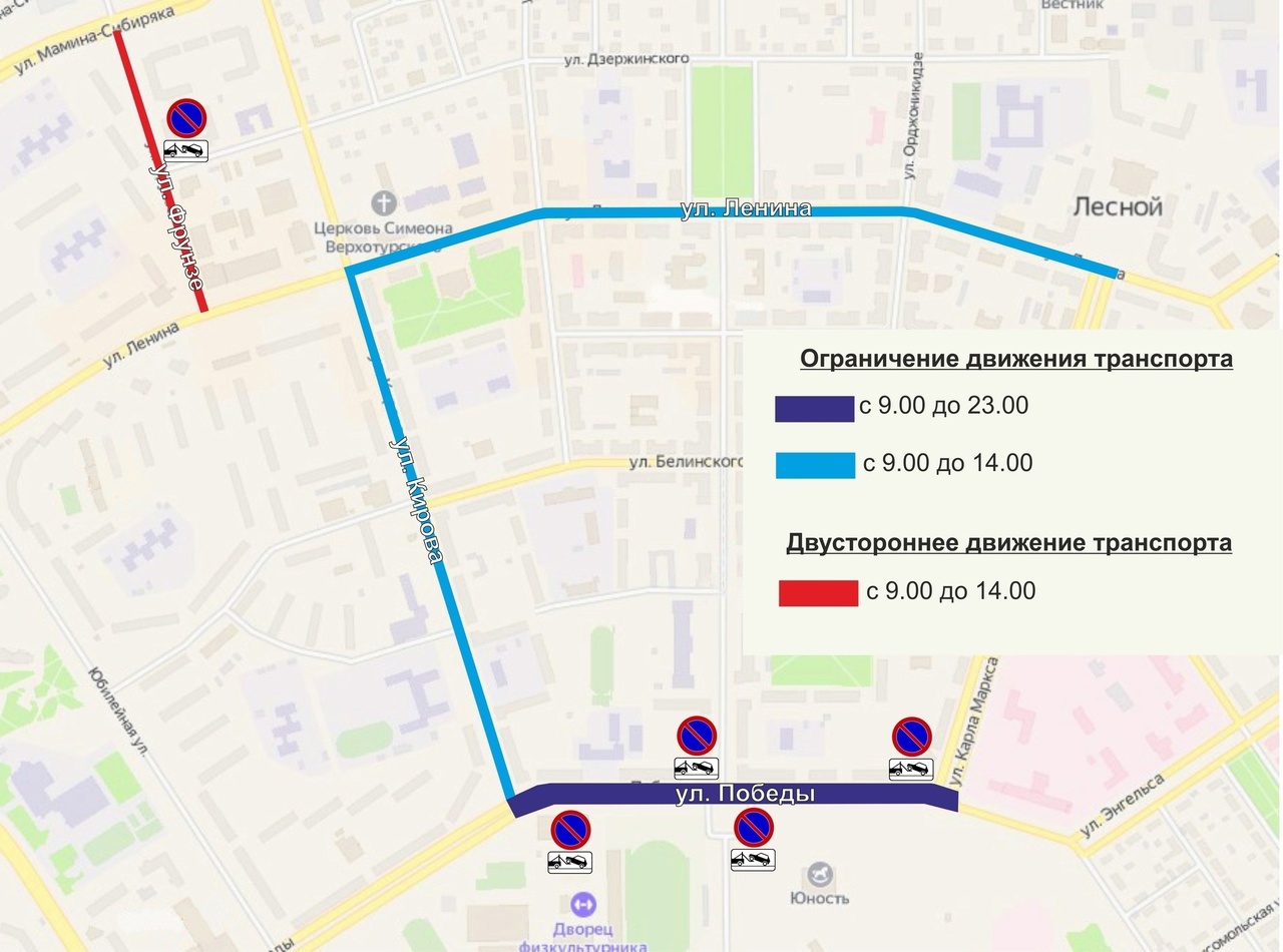 - 19 июня будет введено двустороннее движение транспорта по ул. Фрунзе с 9.00 до 14.00.