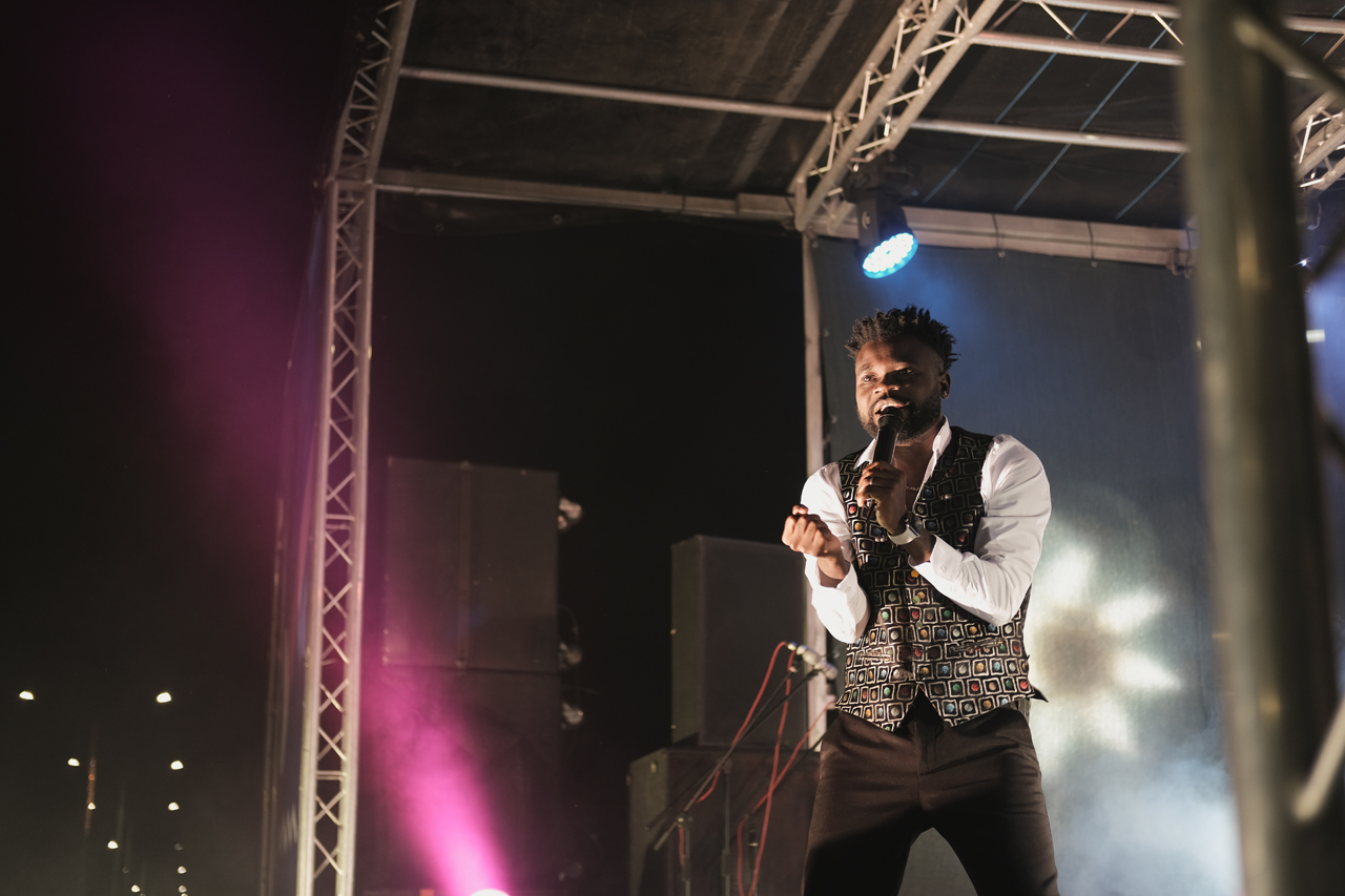 Ну а в финале появился MC Simeon. И гости праздника зажигали уже под хиты восьмидесятых, девяностых и двухтысячных — Boney M, Ottawan, Fly Project и другие. Пел гость в основном на английском, но последнюю песню вечера, «Районы-кварталы» «Зверей», исполнил на чистом русском. А в конце прогремел праздничный салют.