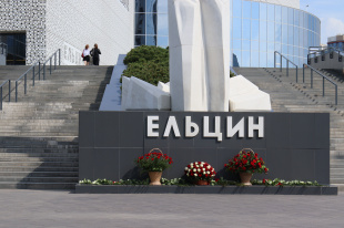 В День России екатеринбуржцы несут цветы к памятнику Борису Ельцину
