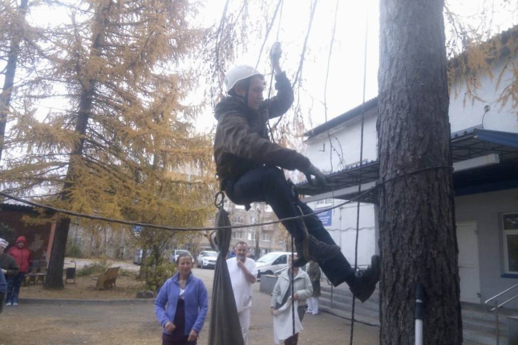 – Когда мы во второй половине дня остановились рядом с больницей, то уже издали увидели и лиственницу, и рыжего кота рядом с верхушкой. Окрас его прекрасно гармонировал с золотой осенней хвоей. У дерева сильно выражена северная и южная сторона – все ветви растут строго в одну сторону, а другой бок ствола совсем гладкий. Кот, естественно, сидел на южной стороне, а я начал подниматься к нему по северной. Предсказуемо, при моем приближении он откочевал на самый кончик дерева, откуда и был в итоге снят удочкой. Медработники унесли котю в помещение – согревать, кормить и вообще лелеять (понятно, до следующего его выхода на улицу), – рассказал Евгений .