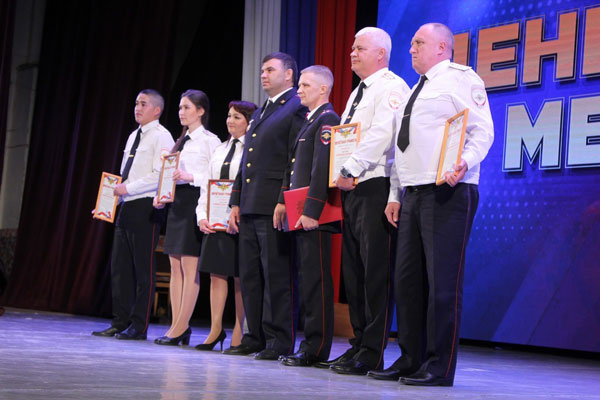 На торжественном собрании сотрудникам ГИБДД вручали офицерские погоны, почетные грамоты и благодарственные письма главы города, председателя городской думы.