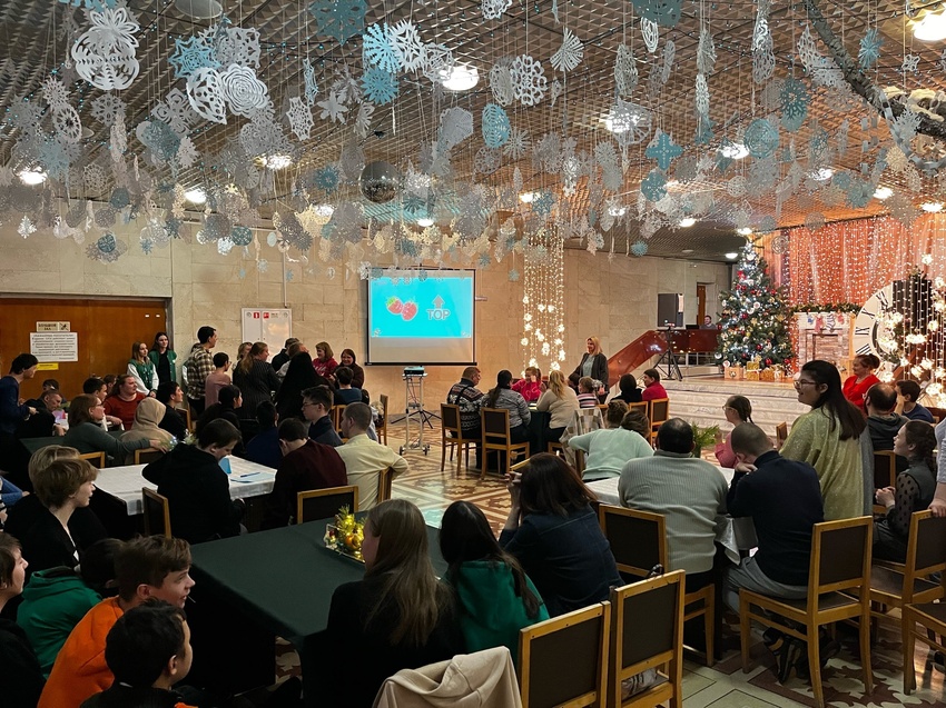 Также отец Сергий зажёг священным огнём церковной свечи стоявшие на каждом праздничном столе рождественские свечи. А кульминацией торжества стал новогодний квиз. Встречу закончили танцами.