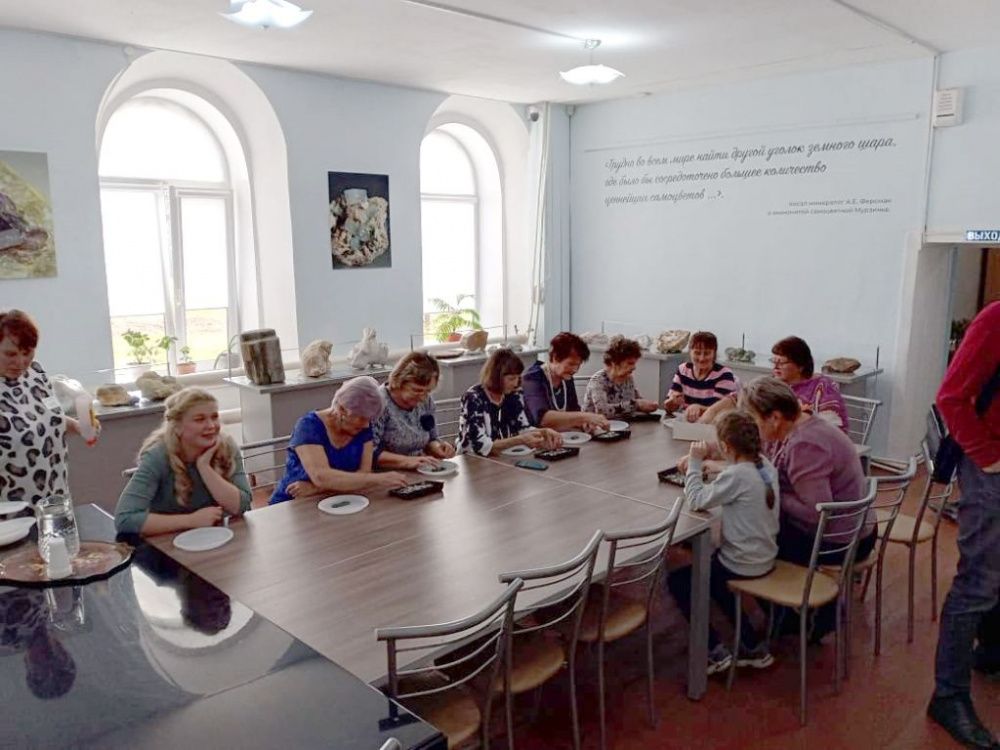 В Минералогическом музеи имени А.Е. Ферсмана в с. Мурзинка люди пожилого возраста в праздничный день могли бесплатно посетить постоянные и временные экспозиции и принять участие в мастер-классе, где изготовляли памятные сувениры из натуральных камней.