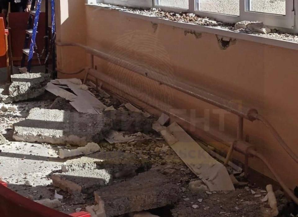 На фото в городских сетях видно, что на полу учебного учреждения лежат большие бетонные блоки. При этом обстановка напоминает ремонтную в самом разгаре процесса. Первые сообщения об этом инциденте поступали с информацией, что упало потолочное перекрытие. Но в администрации города опровергли слух.