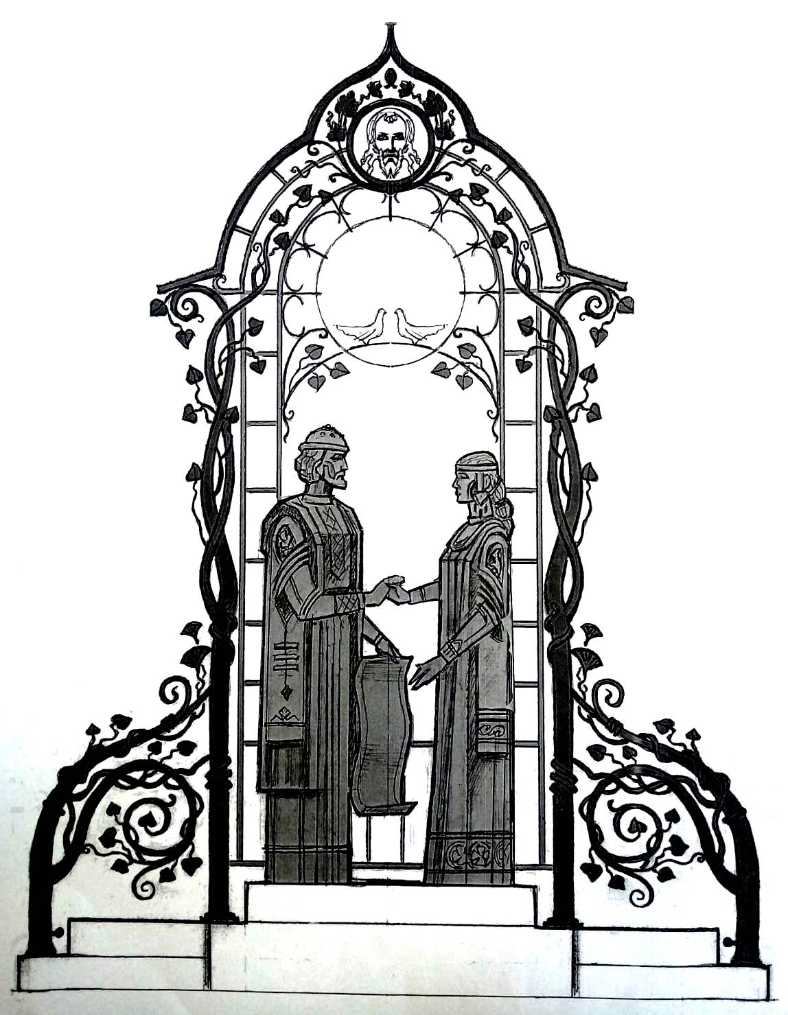 Композиция будет состоять из трех частей: фигуры Петра и Февронии и арки, вершину которой венчает лик Христа, выполненный из цветного стекла. Длина композиции составит 3,8 метра, а высота - 4,2 м. Композиция будет выполнена из стали методом плазменной резки, ручной горячей ковки и сварки, с применением антивандального и антикоррозийного покрытия. Ожидаемый срок реализации проекта - 30 декабря 2023г. Стоимость проекта – 1 300 000 рублей, из них 5% - средства населения в сумме 65 тыс.рублей.
