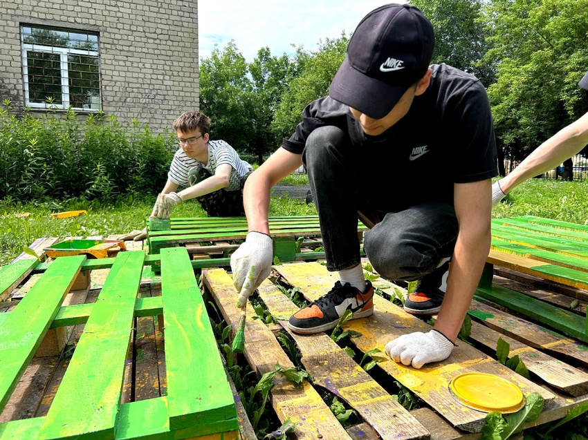 Во дворике, где расположен Центр молодежной политики (Синарская, 7), активисты школьных и студенческих советов, волонтеры, отряды главы города совместно строят место для свободного общения и самовыражения.