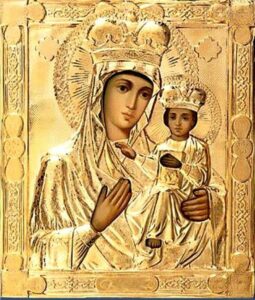 Озерянская икона была украшена дорогой ризой из червонного золота старинной работы, написана на холсте древним малороссийским письмом.
