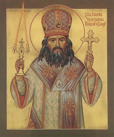 Попечение твое о пастве в странствии ея,/ се прообраз и молитв твоих, за мир весь присно возносимых:/ тако веруем, познав любовь твою, святителю и чудотворче Иоанне!/ Весь от Бога освящен священнодействием пречистых Таин,/ имиже сам присно укрепляем,/ поспешал еси ко страждущим, целителю отраднейший./ Поспеши и ныне в помощь нам, всем сердцем чтущим тя.