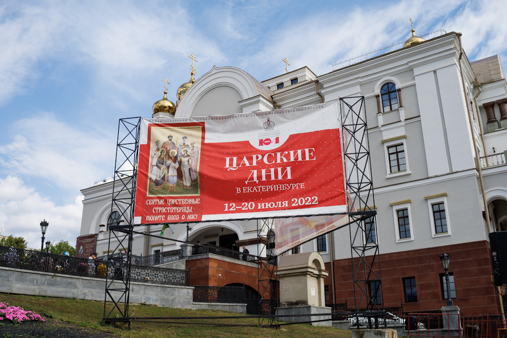 Отметим, на площадке перед Храмом на Крови развернута вся необходимая для проведения главных богослужений Царских дней инфраструктура: установлен большой алтарь, задействованы видеоэкраны, включены звукоусиливающие динамики и т.д.
