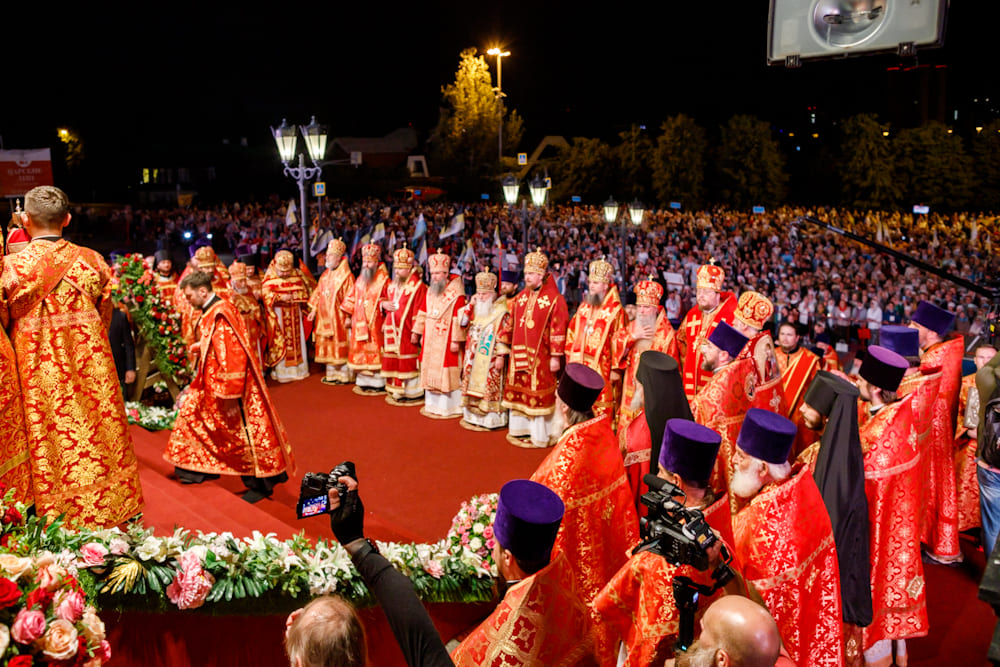Епископ Феодосий и восемь архипастырей возглавили главное богослужение Царских дней — ночную литургию у Храма на Крови