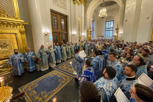 На утрене архипастыри и духовенство прочитали акафист Пресвятой Богородице перед чудотворным списком Казанской иконы Божией Матери.