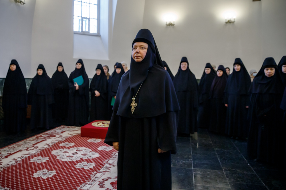 За литургией молилась настоятельница Ново-Тихвинской женской обители игумения Домника (Коробейникова) с сёстрами монастыря.