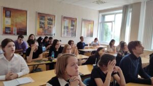 Руководитель молодежного отдела иерей Павел Старков говорил с молодыми людьми о нравственном выборе, о том, какую роль играет мораль в нашей жизни, о патриотизме и патриотическом воспитании. Его заместитель Елизавета Сурова представила студентам презентацию о деятельности поискового отряда «Орленок». Рассказала, где проходят раскопки, почему это важно для сегодняшней жизни, показала солдатскую каску, найденную во время экспедиции. Ребята слушали и задавали вопросы.
