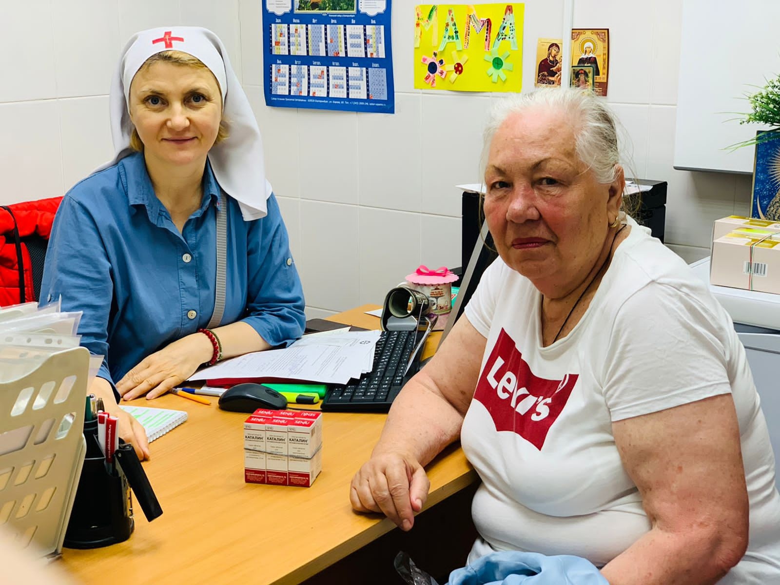 Наталья Владимировна приехала в Екатеринбург из Мариуполя с мужем, дочерью и сестрой, пока остановились у племянницы, планируют остаться и обосноваться здесь. Сегодня они с сестрой, а также 75-летняя Валентина Васильевна из Мариуполя, приехавшая к дочери в Екатеринбург, получили лекарства в Центре гуманитарной помощи.