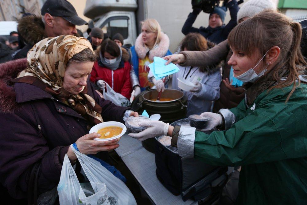 Сейчас горячие обеды выдаются только по четвергам и только в двух районах города. На точки кормления собирается от 30 до 50 человек.