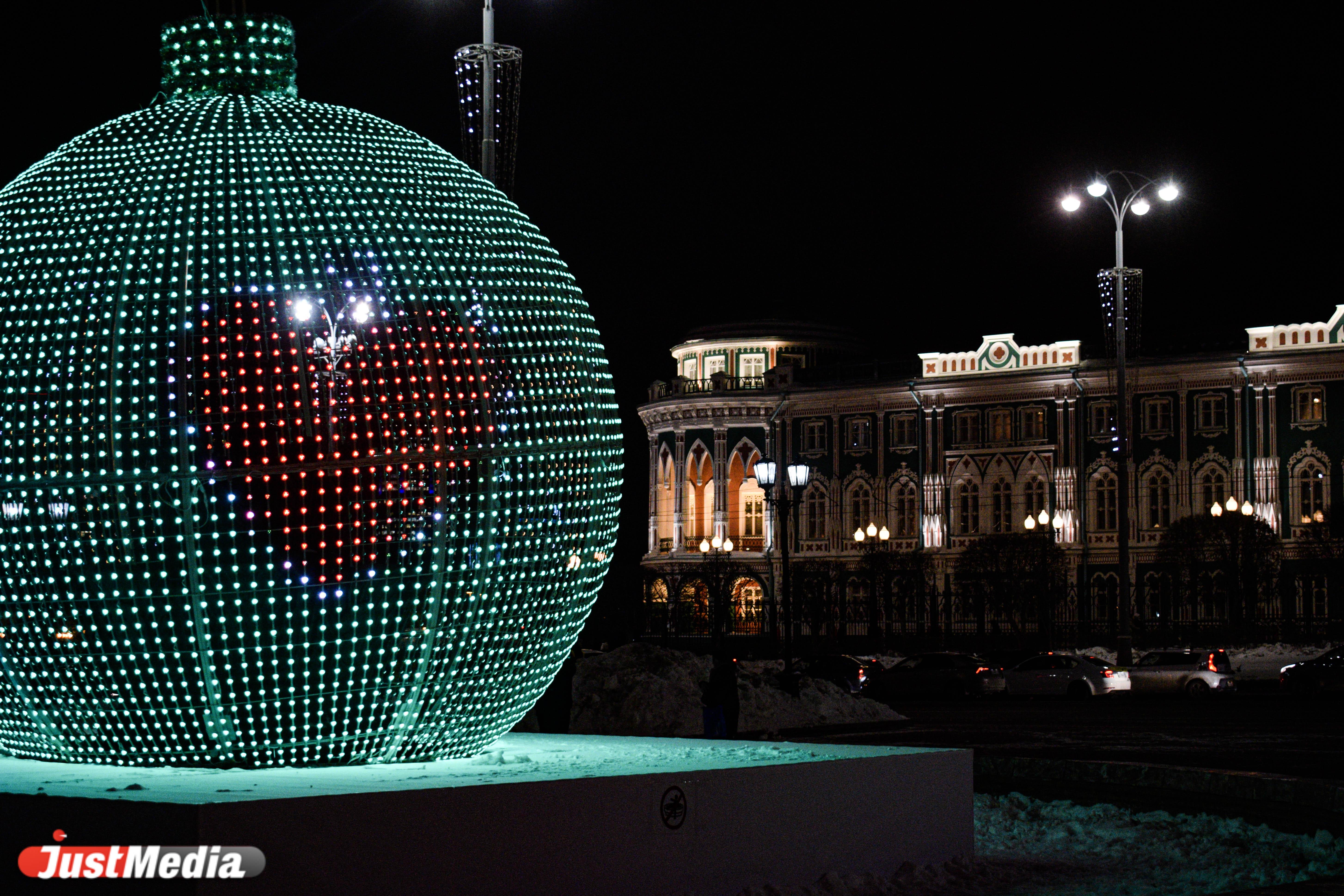 В центре Екатеринбурга появился новогодний шар, украшенный 50 тысячами светодиодов