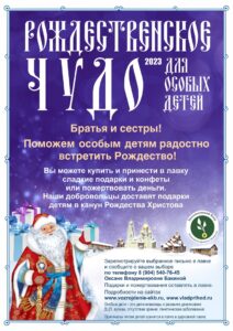 В храме в честь Владимирской иконы Пресвятой Богородицы на Семи Ключах стартовала традиционная благотворительная акция «Рождественское чудо 2023» для детей с ограниченными возможностями здоровья.