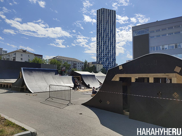 На этой неделе шла активная подготовка к предстоящему мероприятию. Возле "Уральца" возвели сцену и специальные конструкции для трюков.