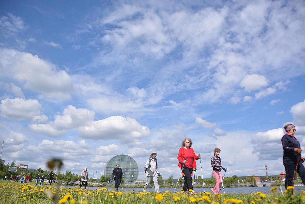 Фото © Сегодня, в воскресенье, 5 июня в Первоуральске на городской набережной активисты Первоуральск - город чемпионов, вновь открыли клуб «Скандинавской ходьбы».