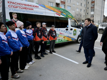 Губернатор Свердловской области Евгений Куйвашев в ходе рабочей поездки в Красноуфимск 17 апреля передал спортсменам, которые занимаются в местном физкультурного-оздоровительном центре "Сокол", автобус для поездки на соревнования.