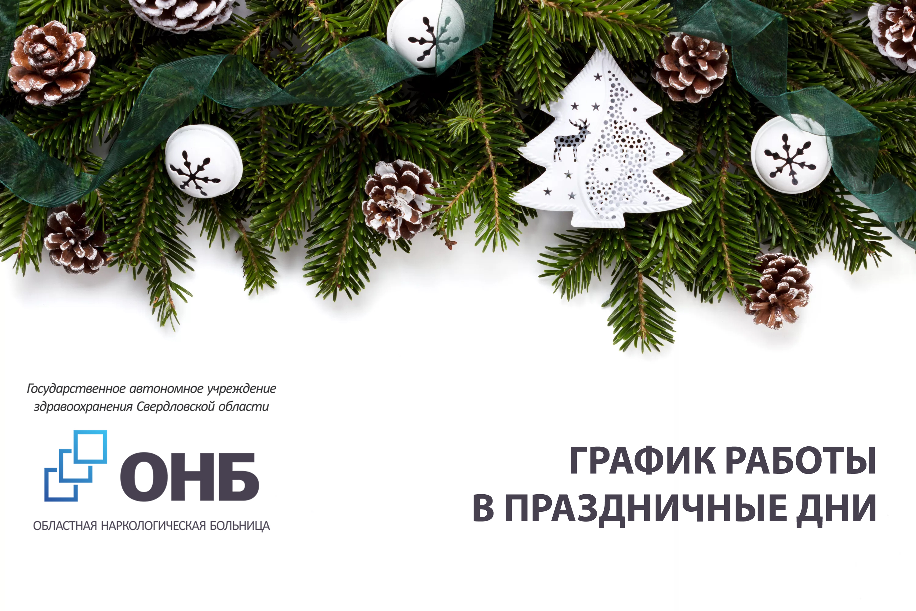 Областная наркологическая больница поздравляет Вас с наступающим Новым годом и Рождеством и обращает внимание на изменение режима работы подразделений в праздничные дни.