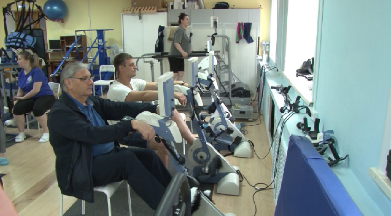 Аппарат для разработки стопы и голеностопного сустава здесь появился недавно. Но уже вовсю помогает ставить пациентов на ноги. Виталий Фролов играл с друзьями в футбол, упал-очнулся-разрыв ахиллова сухожилия. Сделали операцию. Больной вопрос решился с помощью современного оборудования. Теперь Виталий ходит и даже строит планы, когда снова удастся попинать мяч. Опять начать кататься на лыжах мечтает и Алексей. К его травме колена врачи подходят с нестандартной стороны — через голову. «Каждый раз сигнал идет в мозг, из мозга в колено, и он удерживает свое тело. Почти сноуборд, но с лечебной целью», — говорит инструктор-методист лечебно-физической культуры Анатолий Обухов.