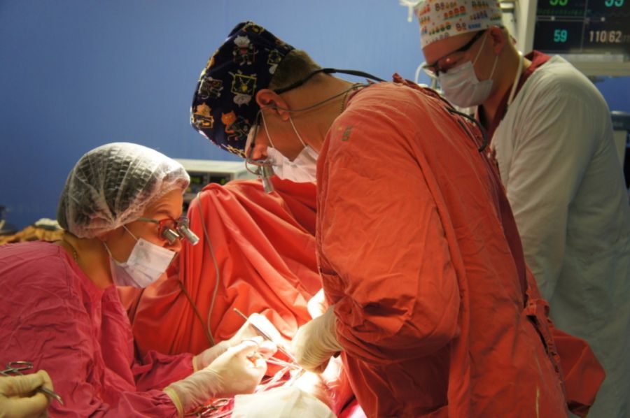 В многопрофильной больнице ГКБ № 40 для оперативного лечения молодого пациента была создана мультидисциплинарная бригада врачей. Хирурги работали в два этапа, с полуторамесячным интервалом. Сначала радиолог под рентген-контролем «отключал» кровоснабжение опухоли. Затем сосудистые хирурги вычленяли из клубка сосудов и удаляли по очереди два очага раковых клеток.