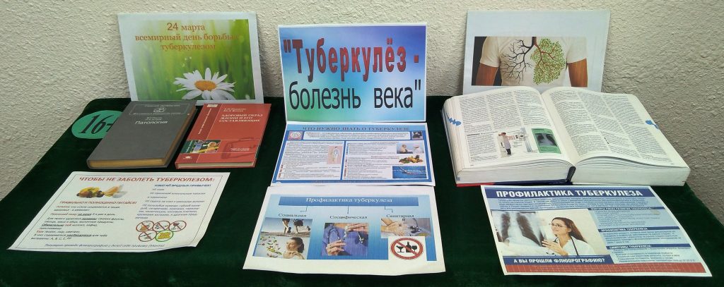 Туберкулёз – одна из самых актуальных проблем в мире. С целью привлечения внимания к этой проблеме и профилактики этой опасной болезни, а также, в преддверии Всемирного дня борьбы с туберкулёзом, Центральная библиотека им. А. С. Попова оформила книжную выставку «Туберкулёз – болезнь века» . Представленная на ней литература знакомит с причинами развития туберкулёза, источниками инфекции, его осложнениями, факторами, которые способствуют развитию заболевания и профилактическими мерами. В России день борьбы с туберкулёзом назвали Днём белого цветка – ромашки – символа чистых лёгких.