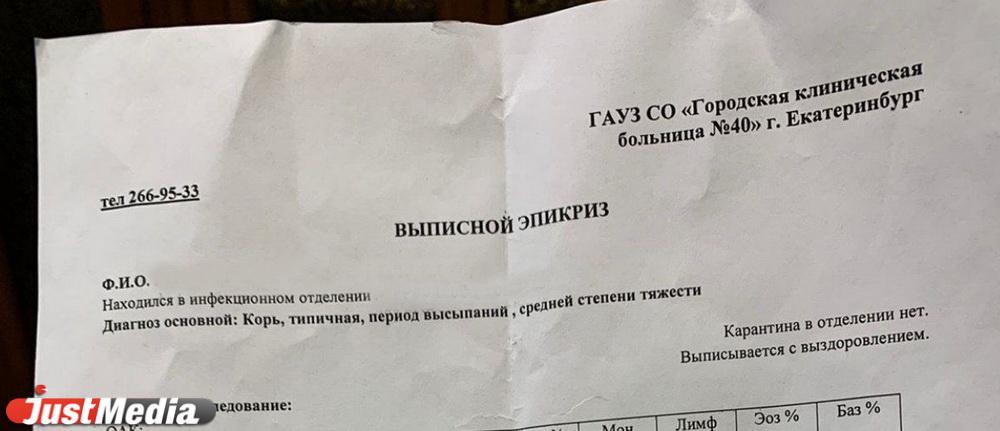 «В доме, где мы проживаем, у жильцов из двух квартир была выявлена корь. Объявлен карантин. Когда у меня и моего малыша тоже заподозрили корь, нас отправили в 11-ю ДГБ, а затем сразу госпитализировали в 40-ю больницу. Сколько нас лежало в инфекционном отделении, не знаю, потому как выходить из палаты было запрещено. Наш педиатр нам честно сказала, что наш Железнодорожный район «горит». Возможно, это связано с тем, что здесь проживает много мигрантов, которые не имеют прививок. Хотя наличие последней — не гарантия того, что не заболеешь. Врачи 11-й детской и 40-й больниц все сделали оперативно и качественно. Спасибо им», — рассказала JustMedia.ru жительница Екатеринбурга.